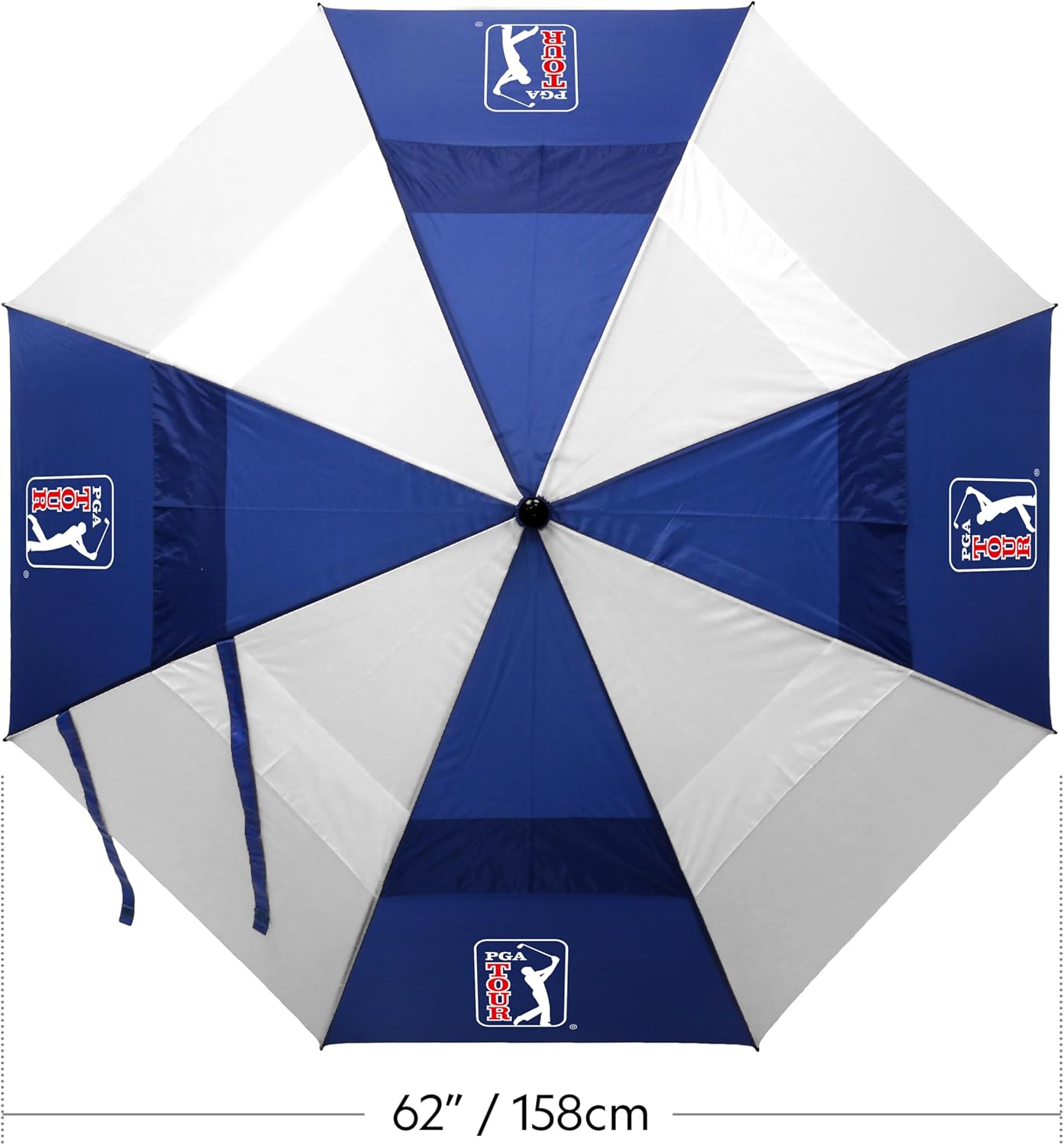 Introducing the PGA TOUR 62-Inch Golf Umbrella, designed for durability and convenience on the green. This men's umbrella features advanced windproof double canopy technology, ensuring you stay stable and dry even in challenging weather conditions.